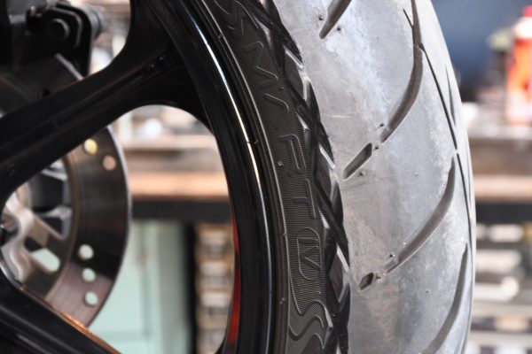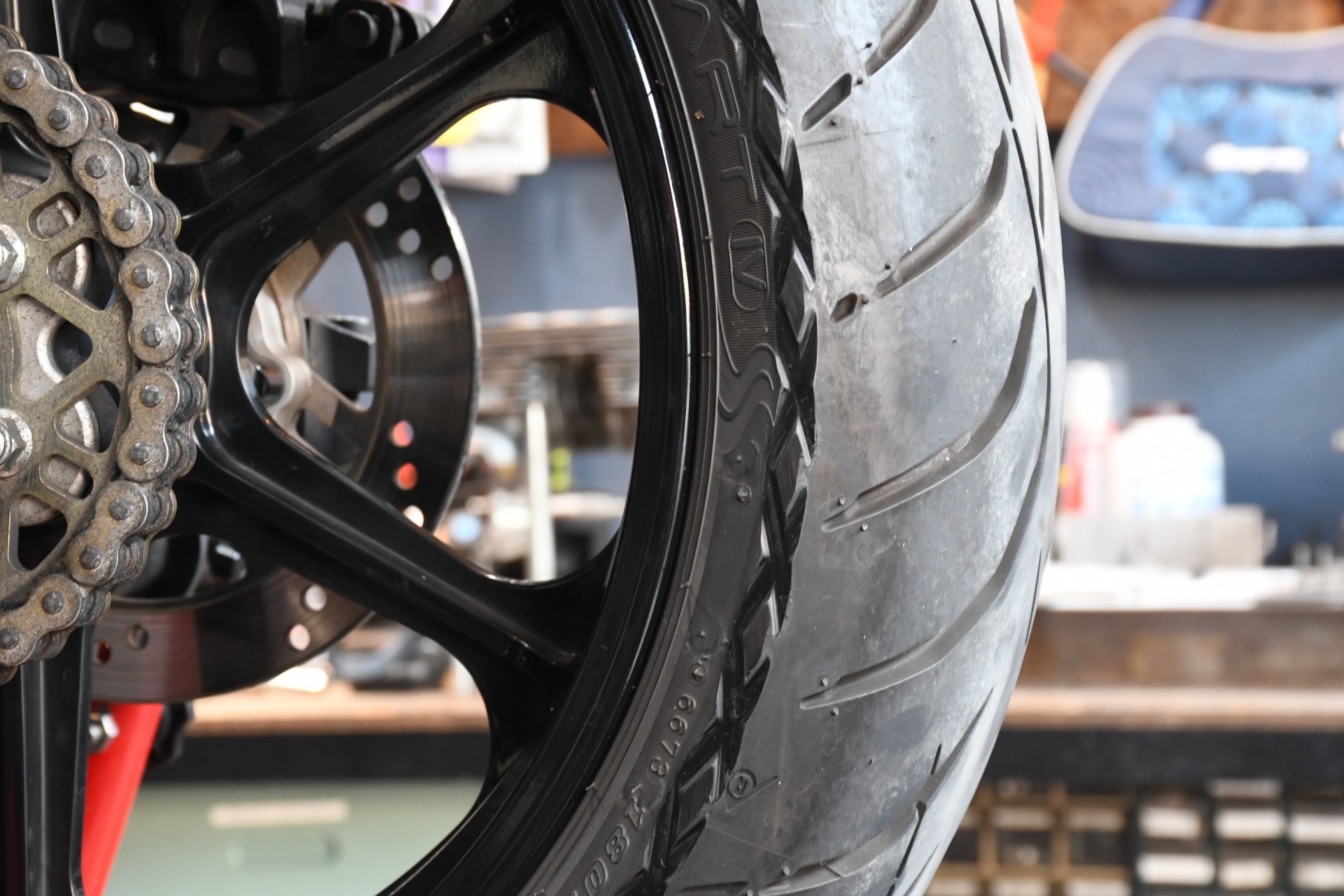180スプロケットセットを使わないで、タイヤとチェーンの干渉を放置するとこうなっちゃうんですね(汗
