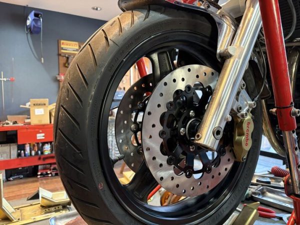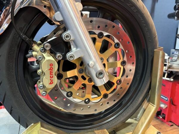 前後ブレンボキャリパーが装着されていますが、このカスタムローターも問題なく装着できます!