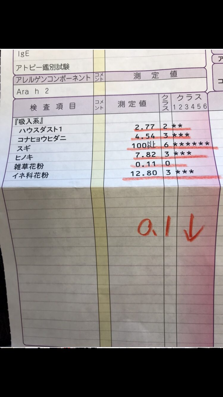 0.1以上の反応があるとアレルギーと言われるらしいです。