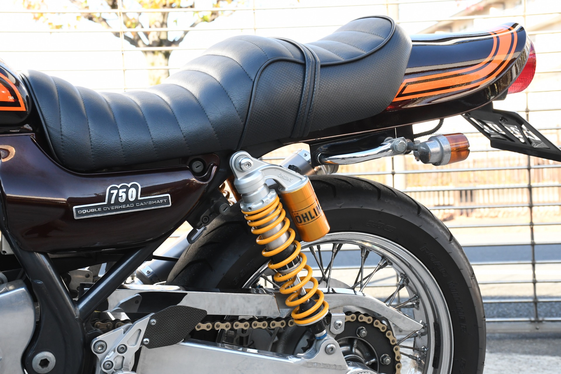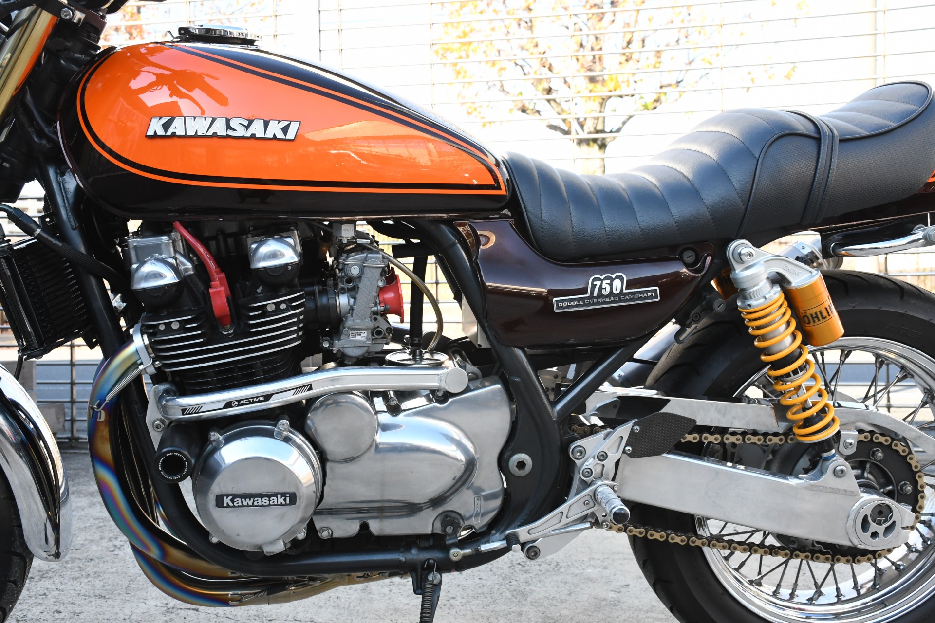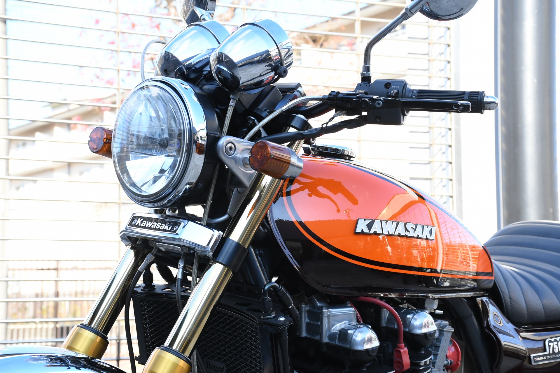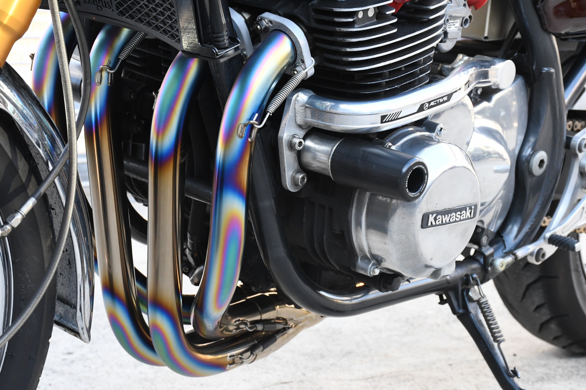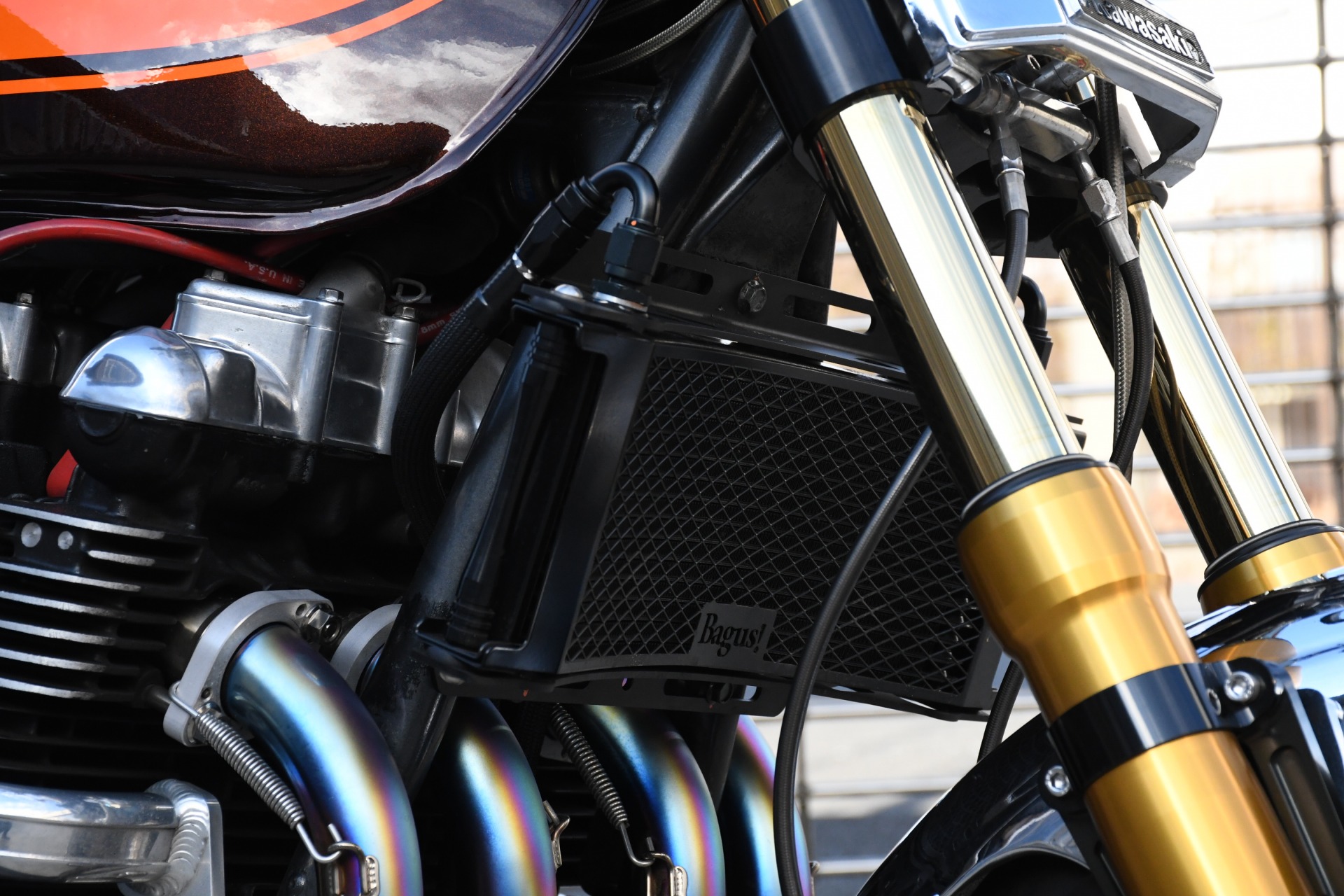 スポークホールのまま、オーリンズ正立フォーク、ワークスエキスパンド、ブレンボキャリパーを装着し、ゼファー750RSの弱点であるブレーキを完全克服!