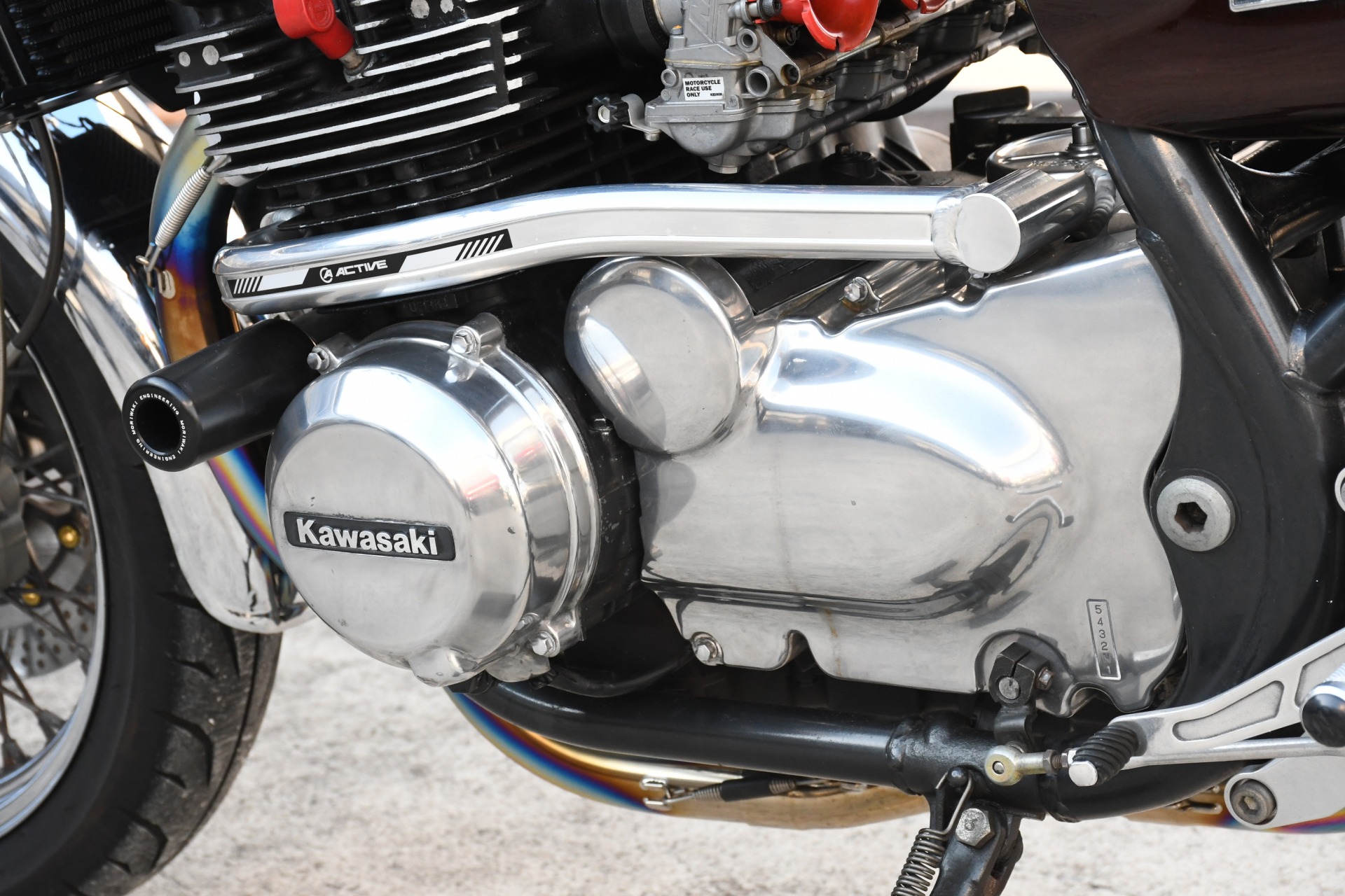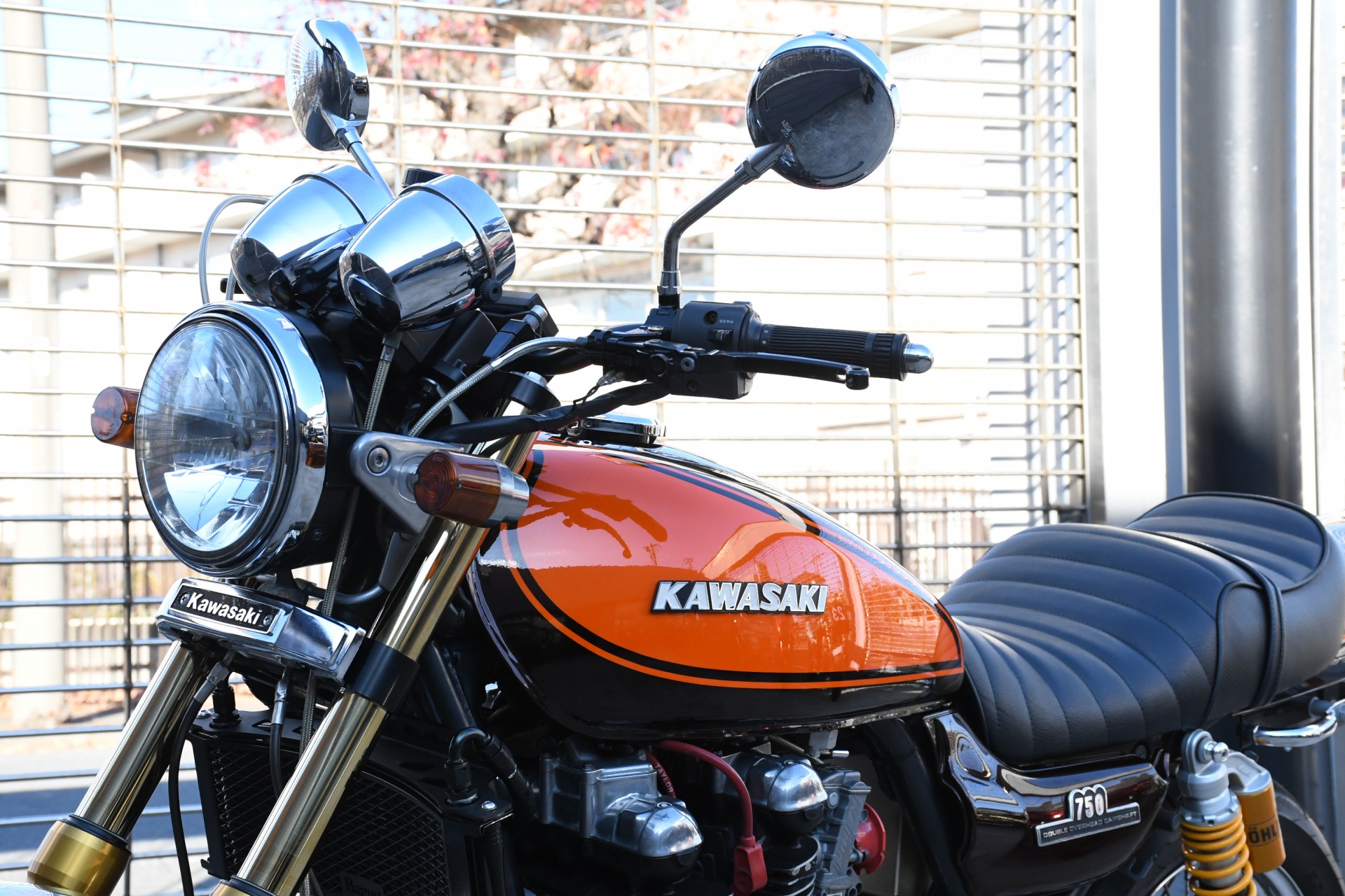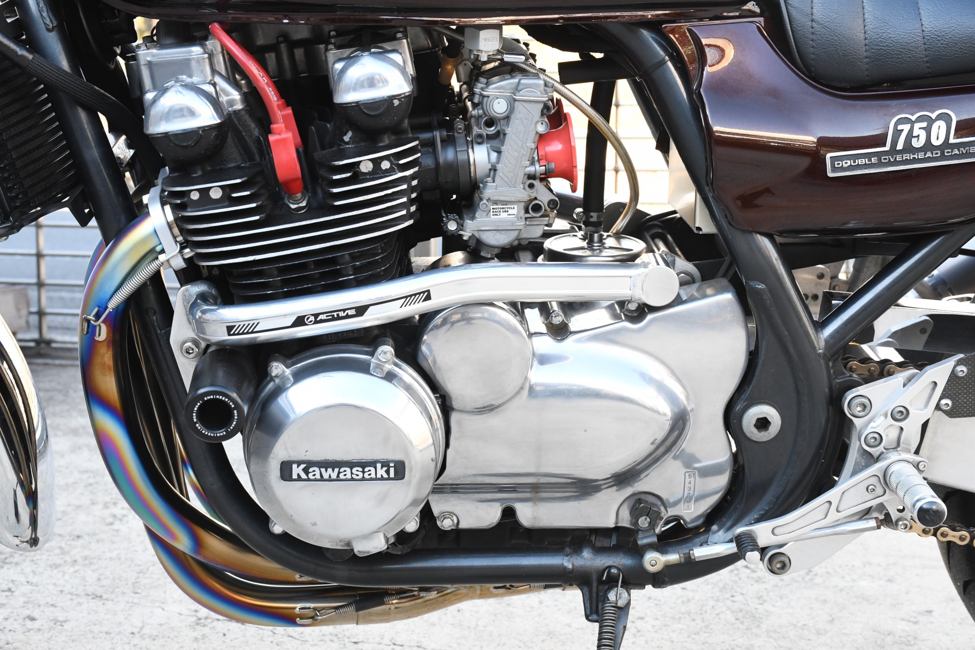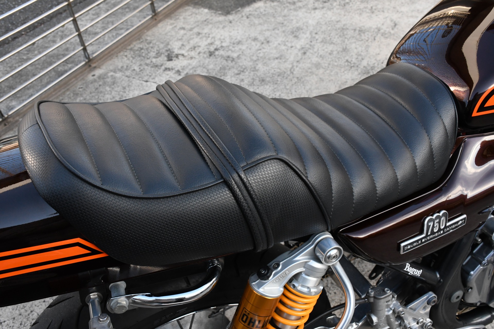 スポークホールのまま、オーリンズ正立フォーク、ワークスエキスパンド、ブレンボキャリパーを装着し、ゼファー750RSの弱点であるブレーキを完全克服!