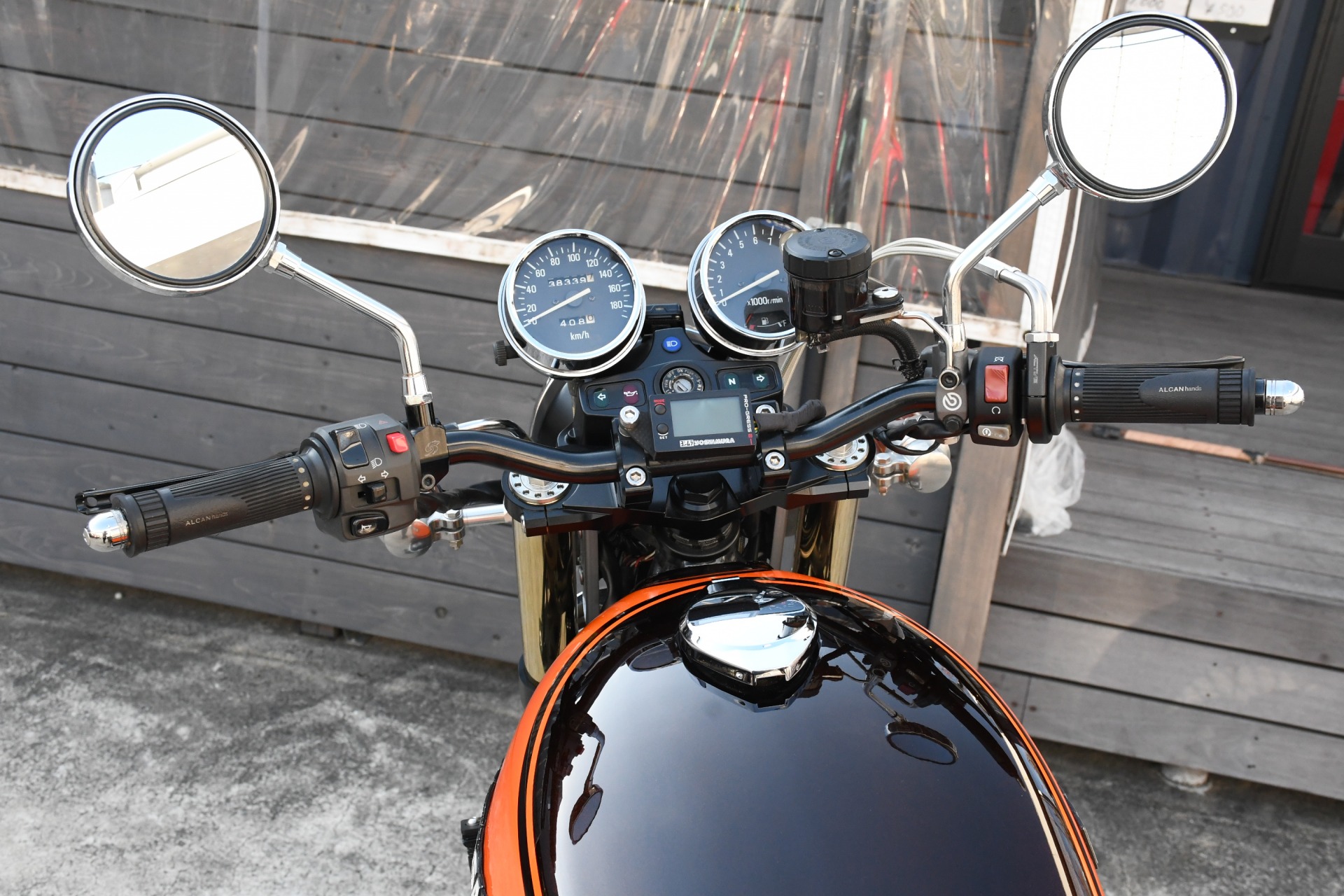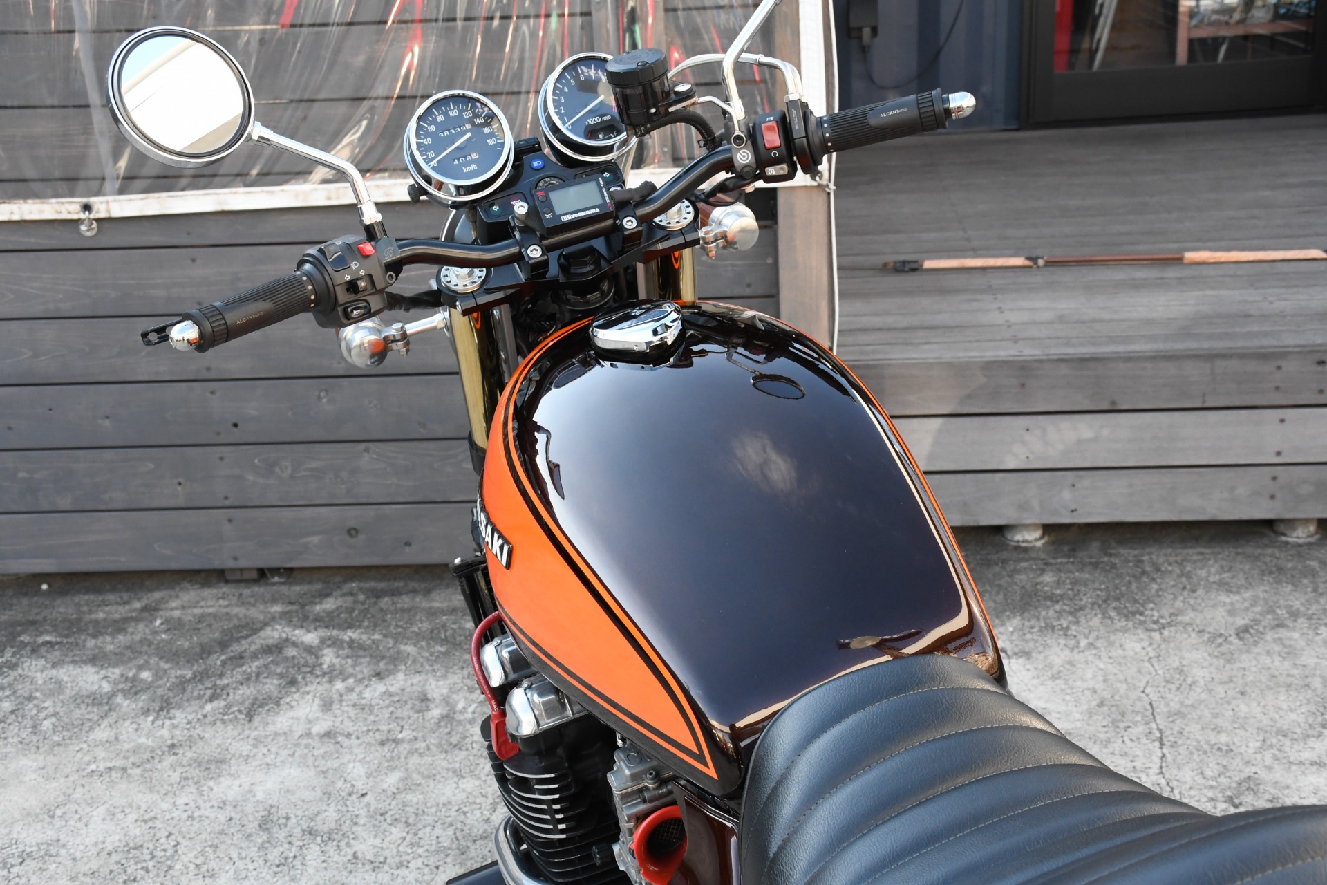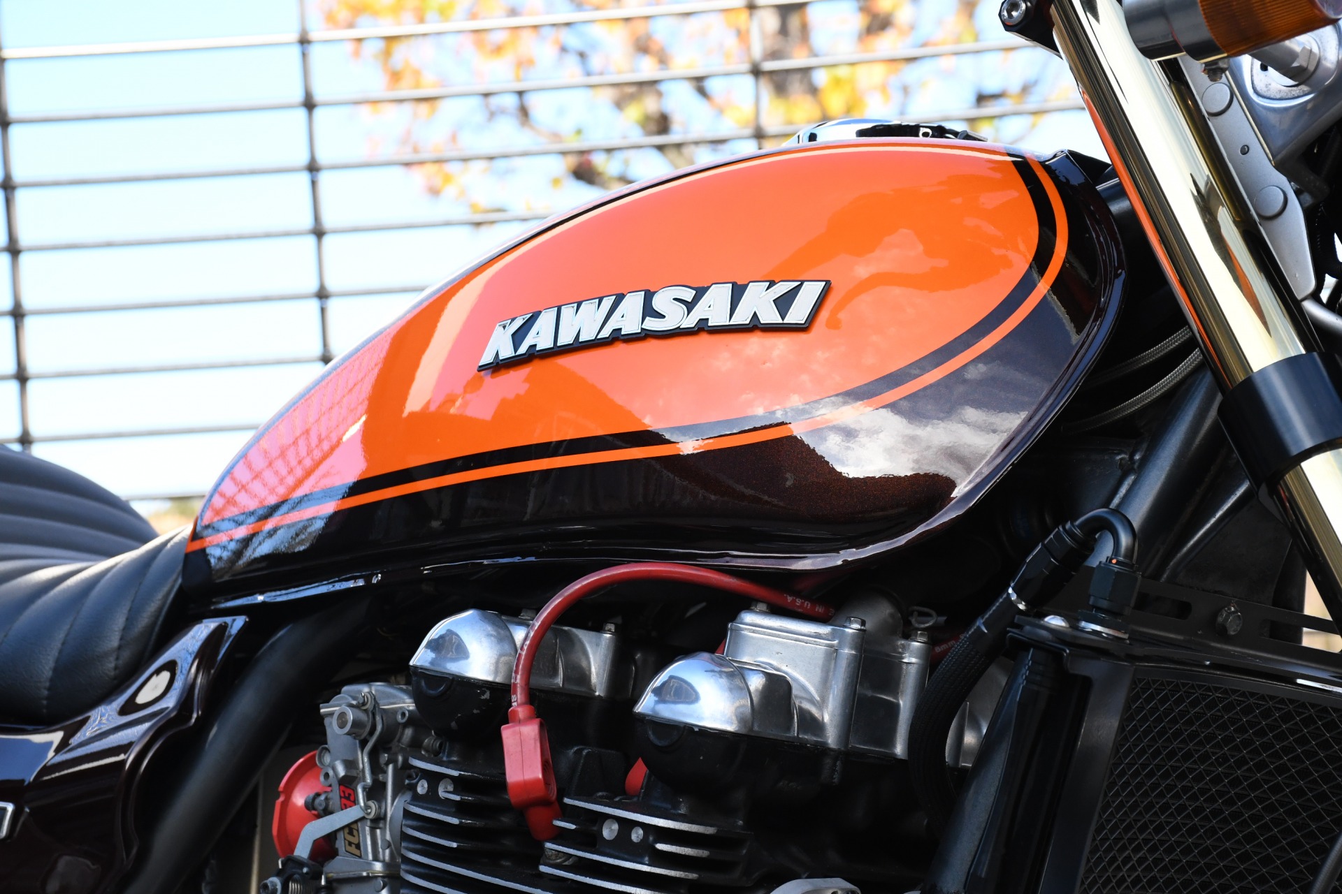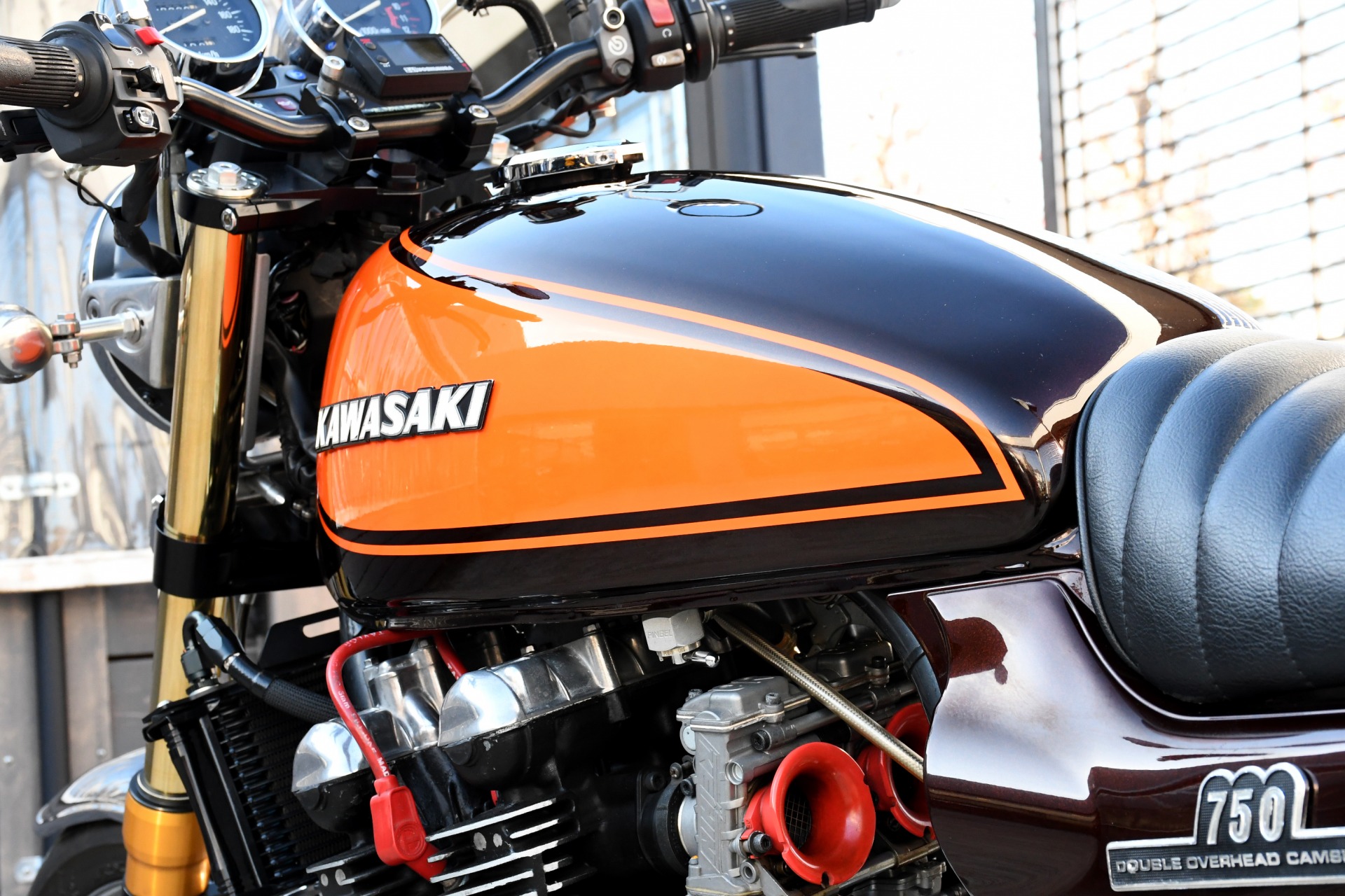 スポークホールのまま、オーリンズ正立フォーク、ワークスエキスパンド、ブレンボキャリパーを装着し、ゼファー750RSの弱点であるブレーキを完全克服!